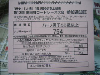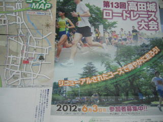 平成24年6月3日 上越市の「第13回高田城ロードレース大会」にハーフに参加する予定でした。