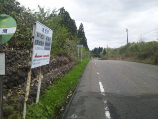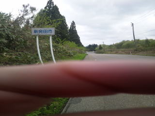 峠の頂点で新発田市に入ります、変な横棒は姫ちゅの指です。