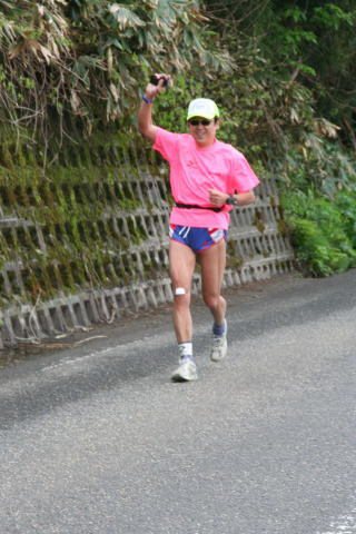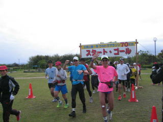 午前7時、個人の部、54名で一斉にスタート、初70キロ、キロ6分で7時間が目標です。