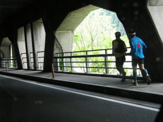 トンネル出口手前でぶんじさんに抜かれます、彼もトンネル出口付近の鉄板の蓋でコケそうになっていました。