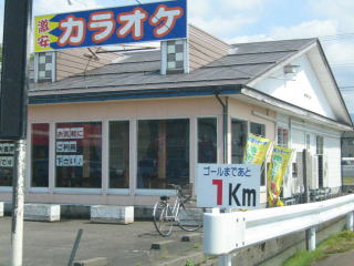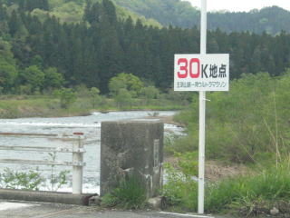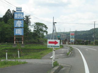 月岡温泉街入口の先を右折、1キロで60キロ、計測ミス。