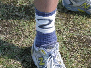 主催者用意のナンバーカード代わりの足首サポーターです。