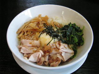長岡商業高校付近に最近オープンした「らーめん大喜」さんの油そば大盛です。