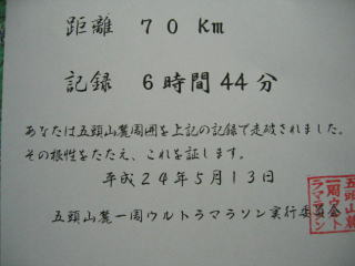 平成24年5月13日 阿賀野市の「第14回五頭山麓一周ウルトラマラソン」の個人の部70キロに参加しました。