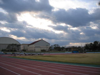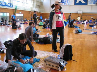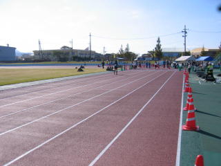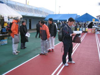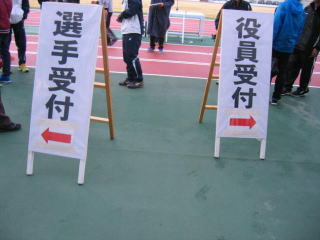 例年通り、まずは体育館の左側に荷物を置いて受付の陸上競技場へ向かいます。