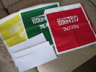 47キロ、78キロ、ゴールの荷物袋とナンバーカードを各シール。