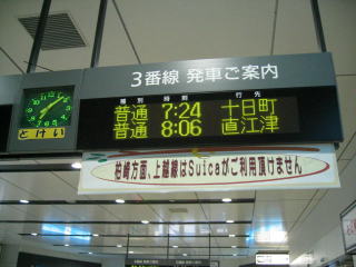 長岡駅午前7時24分発、越後川口駅午前7時50分着です。