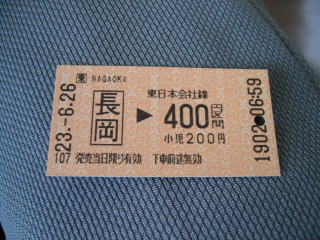 長岡駅から越後川口駅まで400円です。