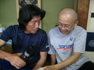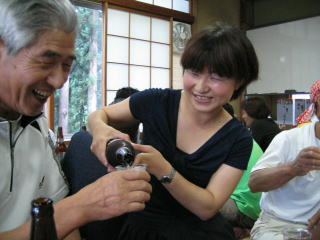 番場会長、お酌をしてもらって嬉しそうです。