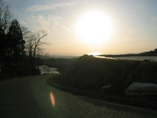 「頑張れ〜♪」の声を背中に聞きながら日本海に向かって急坂を一気に駆け下ります。