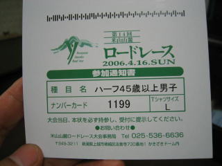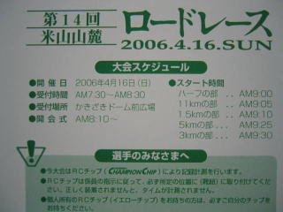 平成18年4月 上越市柿崎の「第14回米山山麓ロードレース」のハーフに参加しました。