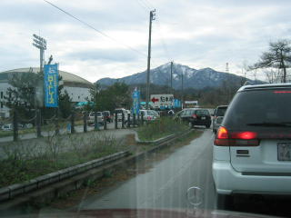 柿崎ICをおり、国道8号線柿崎中学校を右折、そこから渋滞です。