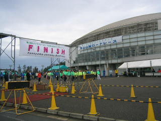会場アナウンスで「最終ランナーがゴールします。」とのこと、最終でも2時間38分、全員頑張ったと思います。