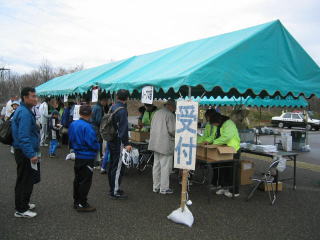 テントの一番右がハーフの受付、隣の11kmにすればよかったと少し後悔していました。
