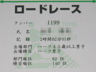 完走証によれば「2時間02分01秒」、当てにならないのか使い方が悪いのか不明です。