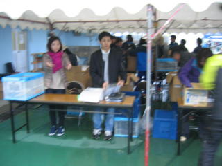 体育館へ戻って用意をします、トン汁、お風呂割引券も付いています。