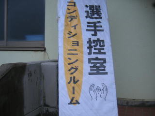 駐車場は中学校体育館前の玄関目の前、体育館の選手控室はガラガラです。