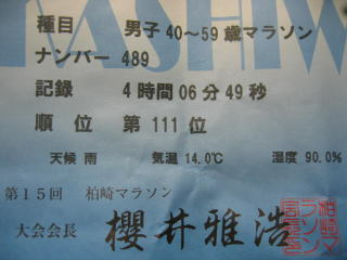 歩かないで全部走ったのですが、もう4時間を切れなくなってきました、記録は4時間06分49秒でした。