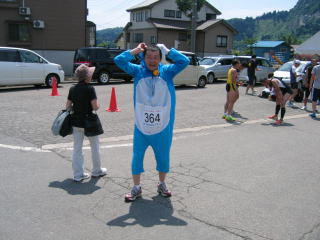 ドラタカ兄さん、暑いのに着ぐるみで完走、お疲れ様でした。