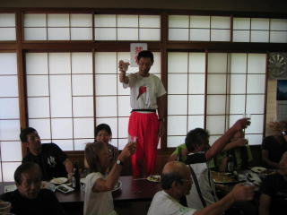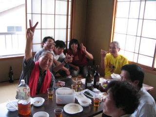 向かいの部屋では小林さん夫婦がリーダー?の「ホノルルマラソンランランクラブ?」が大宴会です。