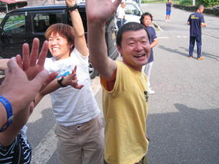 丸山さん、笑顔で無事ゴール。