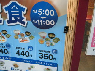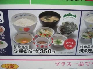 昨年と同じ、歩いて2〜3分の「松屋」さんの朝定食350円です。