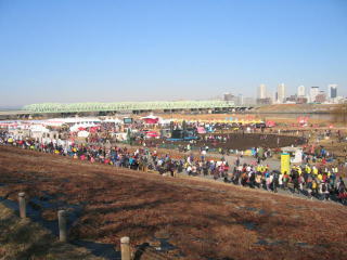 天気は良く、橋の下の日陰は寒いものの、日向は暖かい、風も弱く絶好のマラソン日和です。