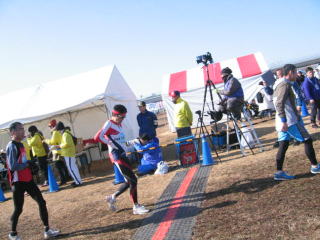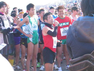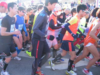 座る場所を確保して、スタート場所などの写真を撮りに行くともうランナーが並んでいます。