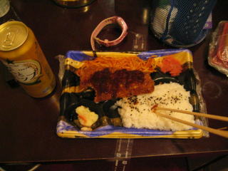 お風呂に入って、弁当2つをおつまみに宴会開始です。