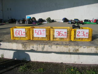 持参した500mlのスポーツドリンクを入れたペットボトル23キロ、36キロ、50キロ、60キロエイドに預けます。