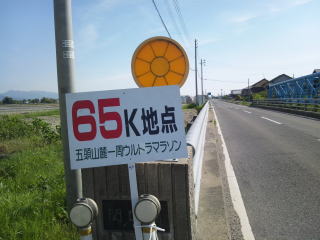 やっと65キロ、日陰が無く暑さを感じます。