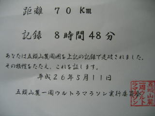 3日後の5月14日水曜日、「走破証」が送られてきました、ありがとうございました。