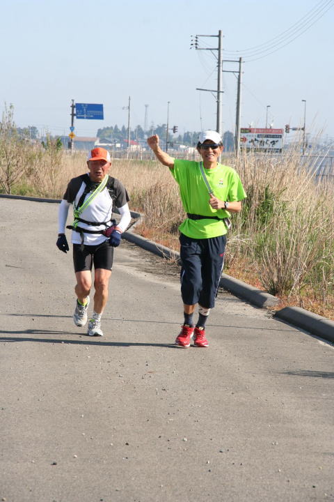 午前7時、好天の中、ウルトラ好きな同志50数名で70キロ先のゴールを目指してスタートしました。