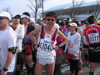 午前7時55分頃到着、スタートまで30分以上ありますが、すでに上位ランナーはスタートラインに並んでいます。