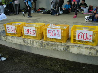 23キロ、36キロ、50キロ、60キロのコンテナに用意したスポーツドリンクを預けます。