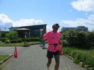 スタート後バラケてから初めて抜かれました、それも女性ランナーです。
