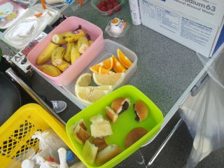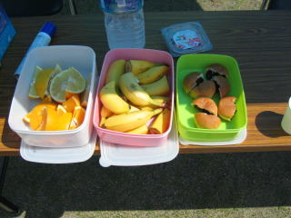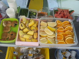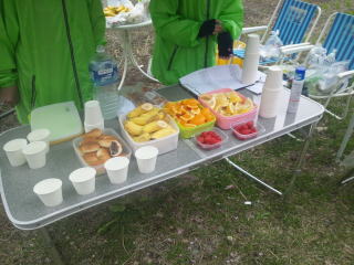 アンパン2切れ、バナナ1切れ、スポーツドリンク2杯いただきました。