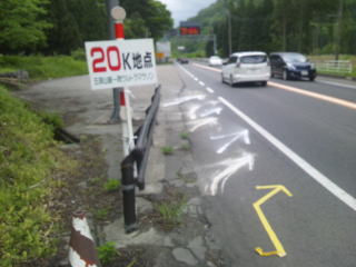 歩道の幅がほとんどありません、ドライバーからも良く目立つ色のシャツを着て参加したつもりです。