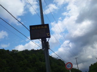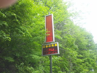 小さな峠に入るところの気温計も14℃、昨年は歩いた峠も今年は普通に走って登ります。