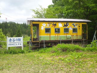 「赤谷の駅」あとを右手に見ながら走ります。