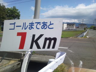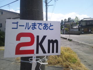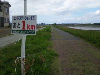 あと1キロです、砂利道に変わり、その後舗装路、瓢湖のふちを走ってゴールです。