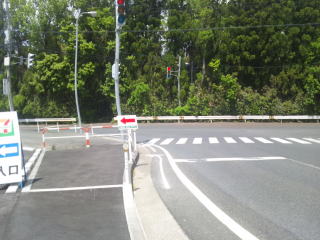 歩道がなくなる場所は、反対側の歩道に移動するため道路を横断しますが、充分に車に気を付けます。