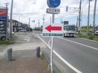 ちょっとおなかの調子が怪しいので、念のために23キロ手前の公衆トイレに寄って、残りの37キロに備えます。