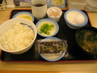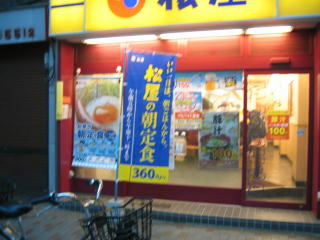 午前7時30分に起きて、近所の「松屋」さんで朝定食360円をいただきました。