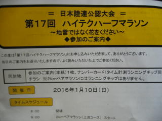 平成28年1月10日 「第17回ハイテクハーフマラソン大会」のハーフに参加しました。