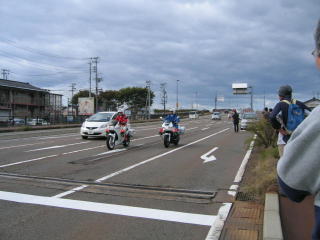 11時13分先導パトカー、11時14分先導白バイ2台が来ました。