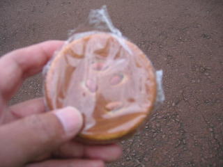 歩道の奥の縁石に座って休憩していると、沿道の方からお煎餅をいただきました、ありがとうございました。