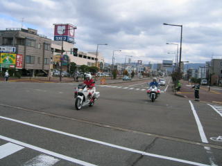 大手大橋西詰のウオロクさん付近の大きな交差点、短時間ですが全面通行止めにして走れることは幸せなことです。
