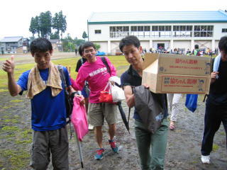 まずは銀シートを敷いて荷物を降ろし、受付に行きます。