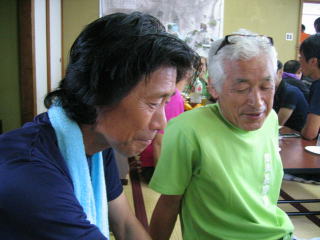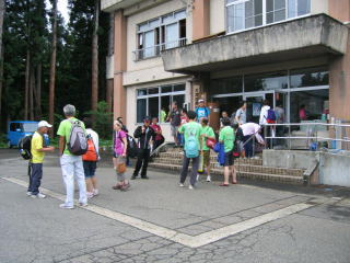 給水所でお水をいただき、「どこまで登りますか?」と聞きました。